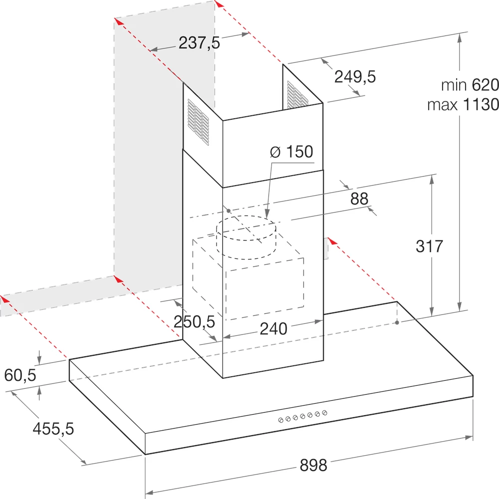 Chaminé Hotpoint HHBS 9.8F LT X/1 – 89.8 cm, 420 m³/h, Inox