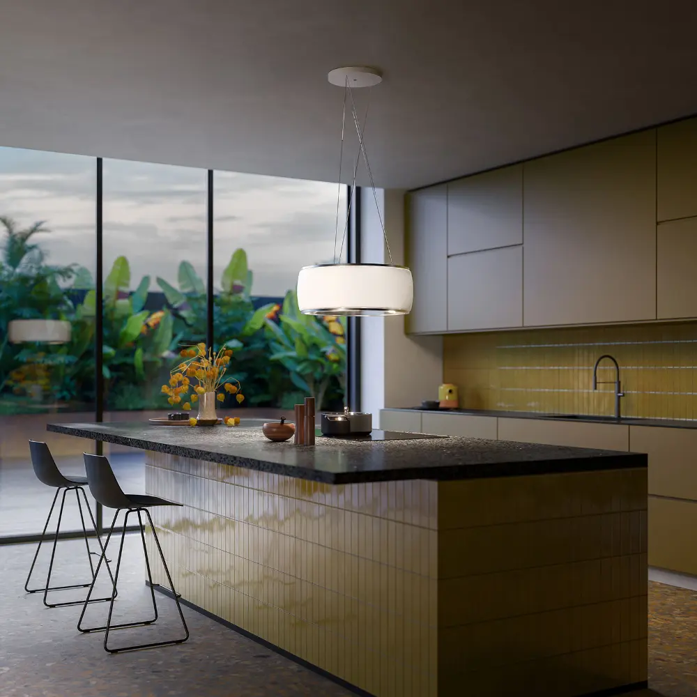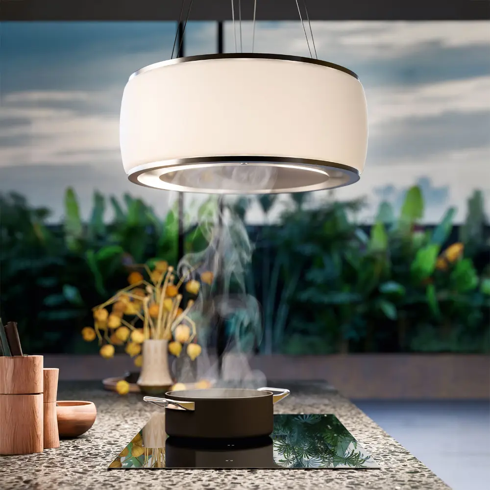 Exaustor SOFFIO – Versão Ilha – 58 cm – Cristal branco – 600 m³/h