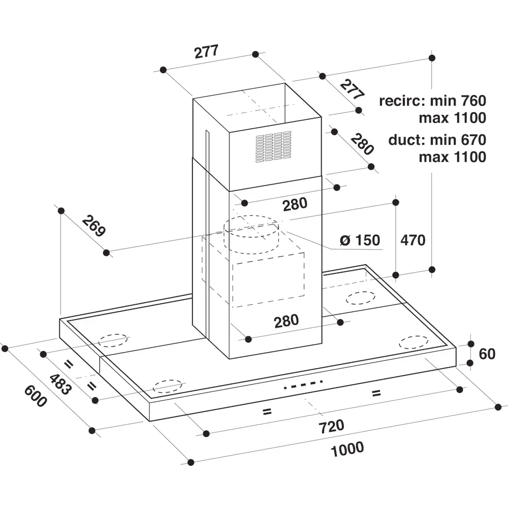 1 motor – capacidade de aspiração min. 304 m³/h (52 dBA), max 713 m³/h (74 dBA)