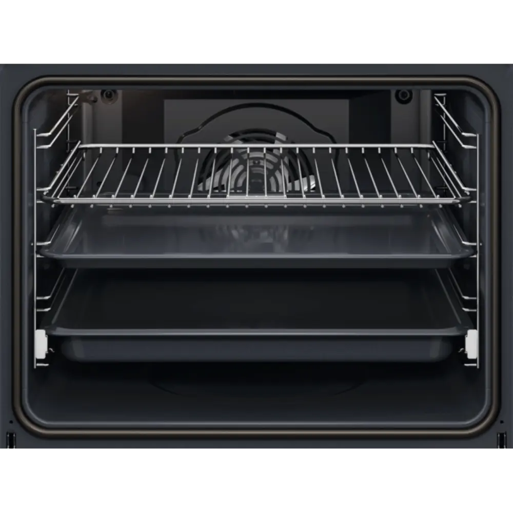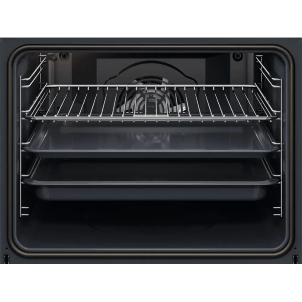 Funções eletrónicas: 45 variedade de programas de cozinha pré-definidos ‘Assist’, 3 ciclos de Pirólise (rápido/normal/intensivo), Sinal acústico (Buzzer), Desconexão de segurança automática, Ajuste de volume de sinal acústico, Bloqueio para crianças (modo desligado), Lembrete de limpeza, Duração da cozedura, Tempo e fim de cozedura, Cronómetro, Início diferido, Modo demonstração com código, Intensidade luminosa regulável (ON), Regulação eletrónica da temperatura, Bloqueio eletrónico da porta, Interruptor eletrónico da porta, Aquecimento rápido selecionável, Bloqueio de funções (em funcionamento), Teclas sonoras & alarme acústico/erro, tons de ativação e desativação, Temporizador, Botão luz interior (menu + acesso direto), Indicação de temperatura real (°C), Indicador de aquecimento residual (°C), Informação de serviço, Proposta de temperatura, Hora do dia
