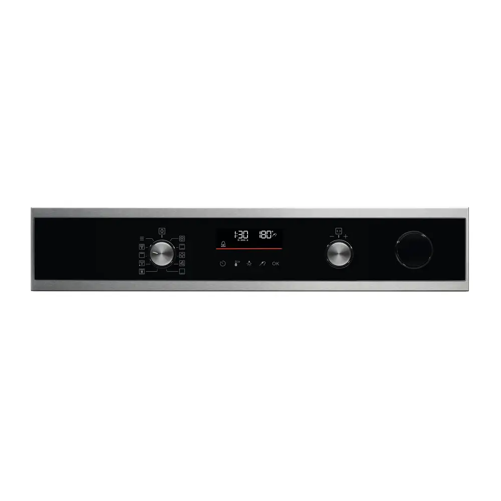 Funções eletrónicas: Temporizador, Botão luz interior (menu + acesso direto), Indicação de temperatura real (°C), Indicador de aquecimento residual, 3 ciclos de Pirólise, 45 variety of pre-set cooking programmes ‘Assist’, Sinal acústico, Alarme / som de erro, Desconexão de segurança automática, Ajuste de volume de sinal acústico, Bloqueio para crianças (no modo desligado), Lembrete de limpeza, Duração da cozedura, Tempo e fim de cozedura, Cronómetro, Início diferido, Modo demonstração com código, Intensidade luminosa regulável (ON), Sistema de abertura de porta, Regulação eletrónica da temperatura, Bloqueio eletrónico da porta, Aquecimento rápido selecionável, Sonda térmica, Sonda térmica com desconexão automática, Sonda térmica com indicador de temperatura interna, Sonda térmica com ajuste de fim, Bloqueo de funções (em funcionamento), Teclas sonoras de menu / desativação, Informação de serviço, Proposta de temperatura, Hora do dia