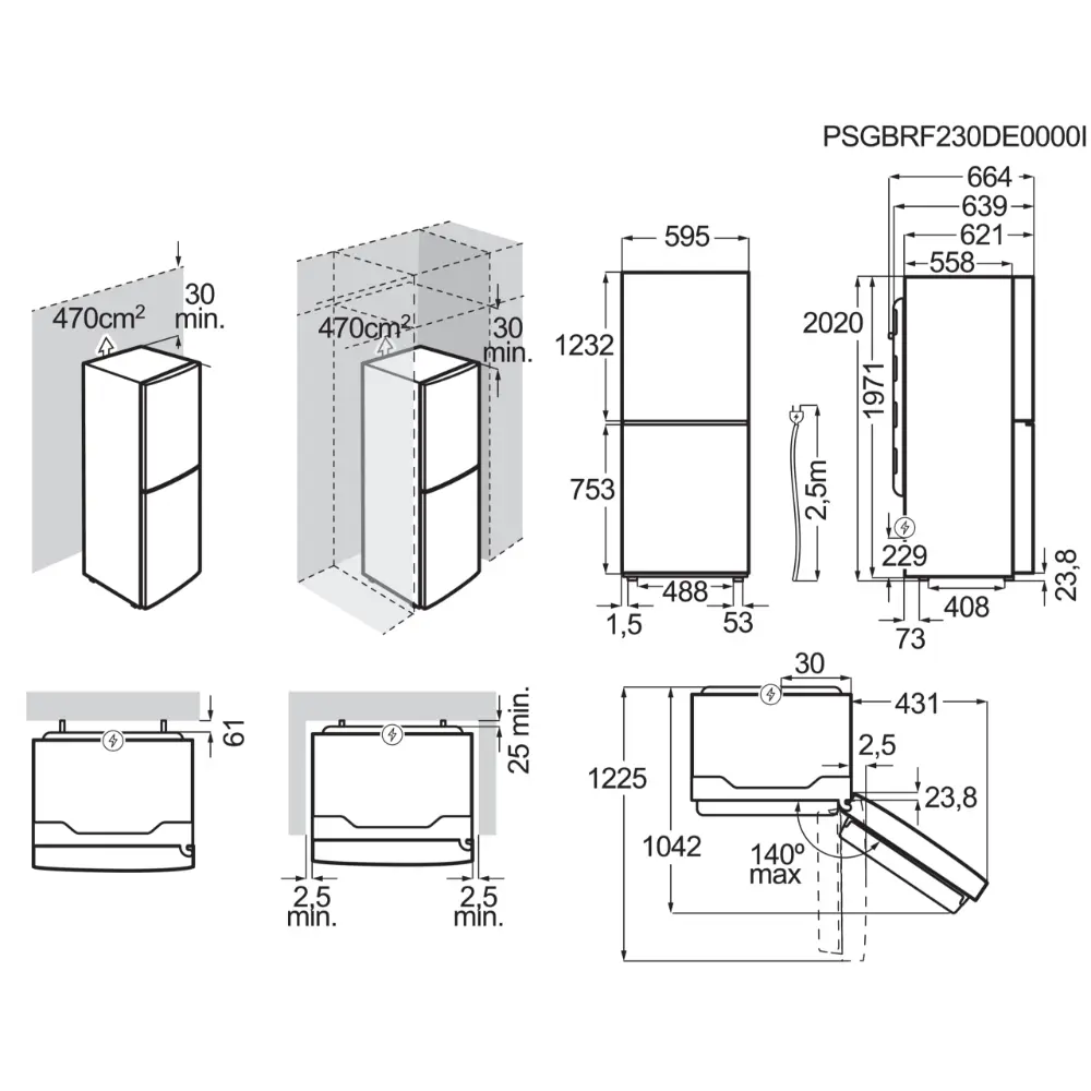 Dimensões (AxLxP), em mm: 2020x595x664