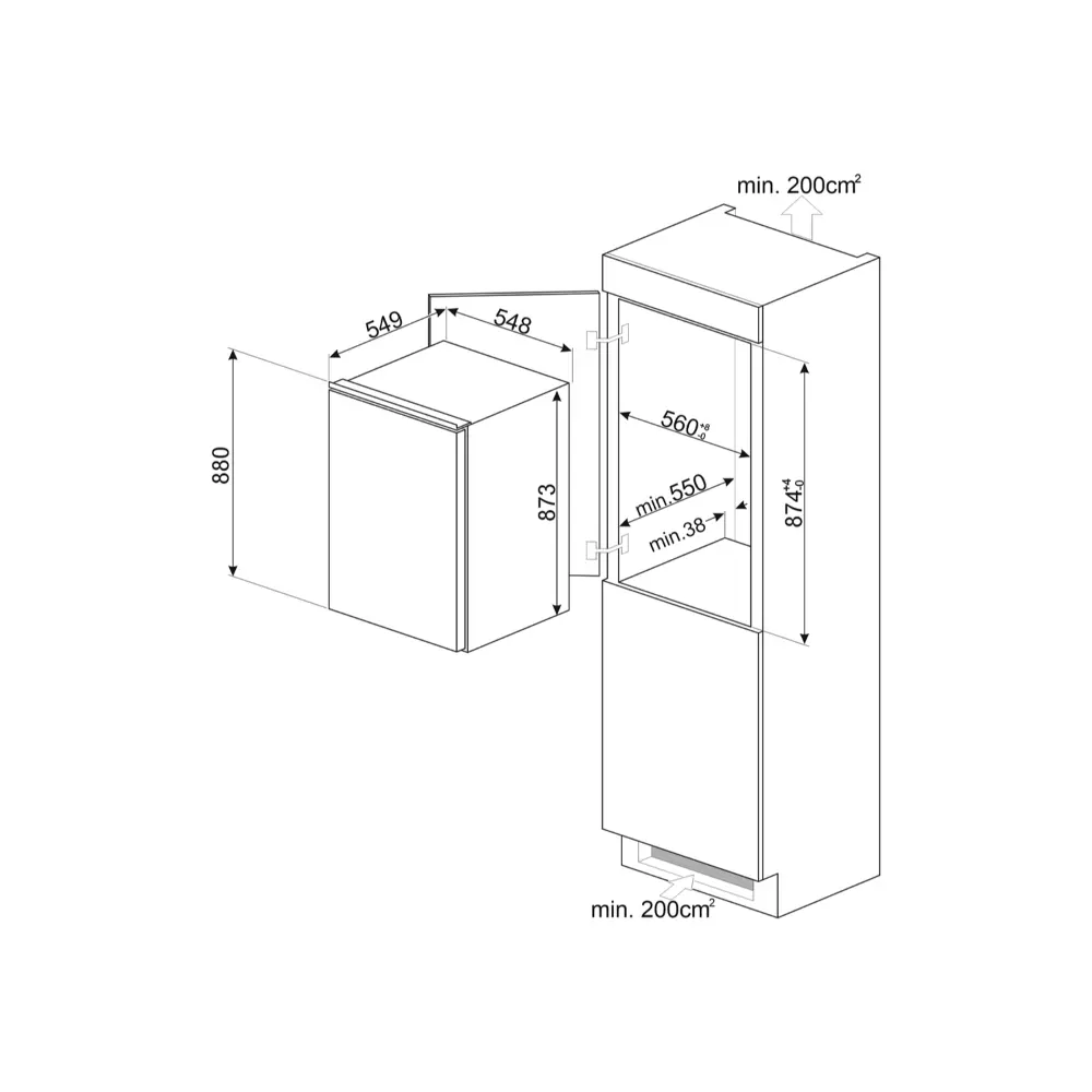 Frigorífico de Encastre Smeg – 88cm Altura – Com Congelador Interno – S4C092D