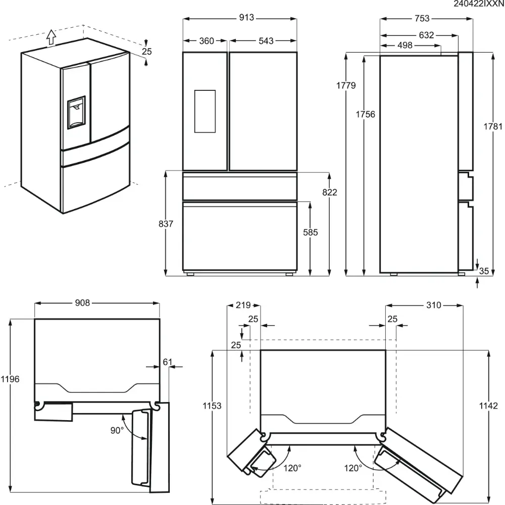 Frigorífico Multiporta AEG – 617L – NoFrost – French Door Dispensador Água – RMB954E9VX