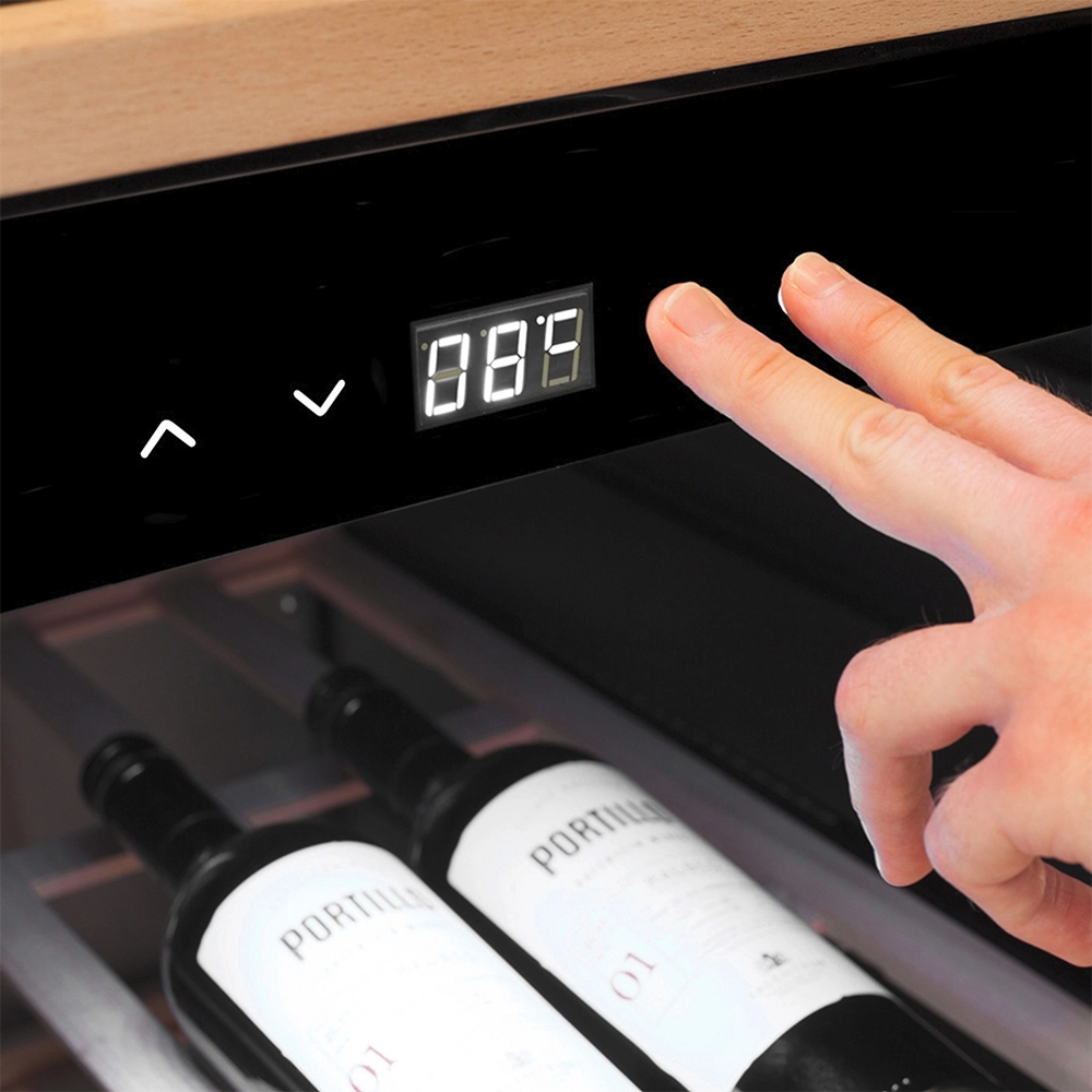 Duas zonas de temperatura separadas para vinho branco e tinto, ajustáveis individualmente através da operação de toque do sensor