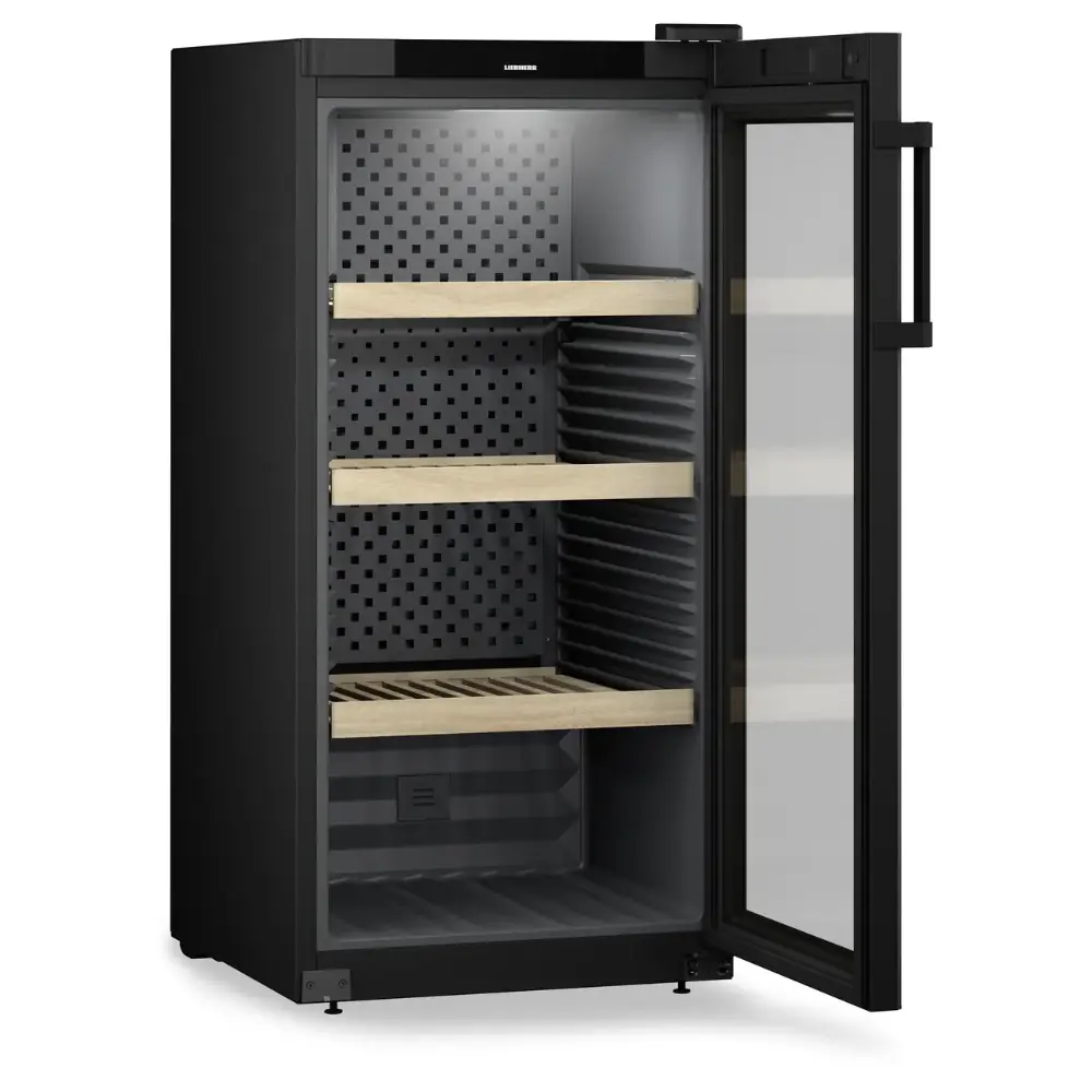VibrateSafe: Garante uma conservação suave com compressores silenciosos e prateleiras de madeira estáveis de faia maciça. Isso minimiza as vibrações que podem perturbar o processo de maturação do vinho.