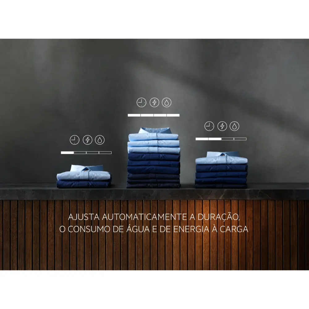 Programas de lavagem: Eco 40-60, Algodões, Sintéticos, Delicados, Power Clean, Vapor, Centrifugação / Drenagem, Enxaguamento, Limpeza da Máquina, Hygiene, Roupa de desporto, Desporto, Lãs, Quick 20 Wash&Dry 60