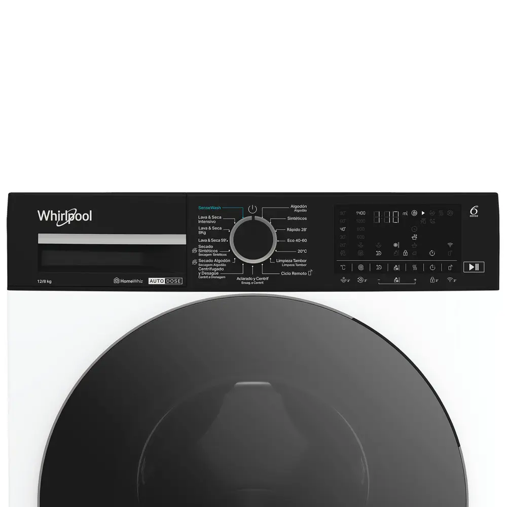Máquina de Lavar e Secar Roupa Whirlpool – 12|8kg – 1400rpm – AutoDose 6º Sentido – WPD 2836W ADS SPT