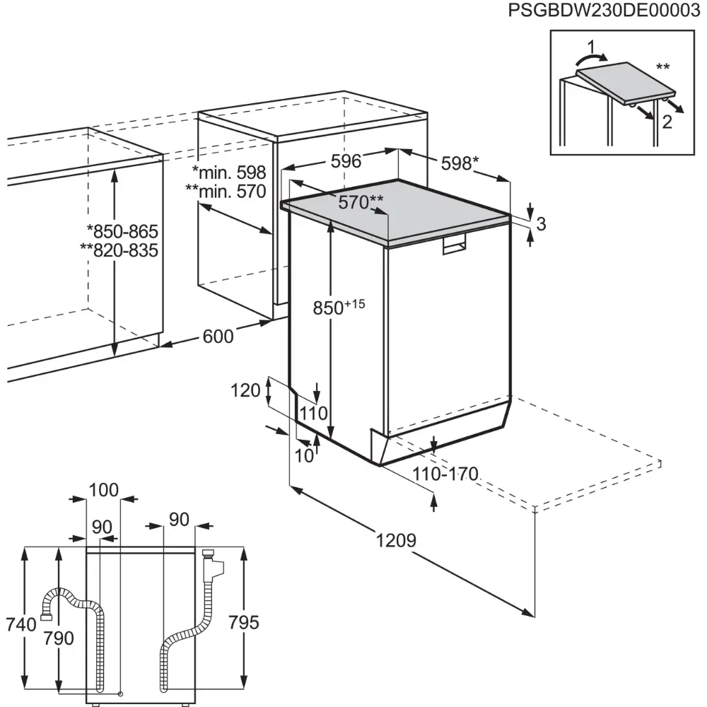 Dimensões (AxLxP), em mm: 850x596x610
