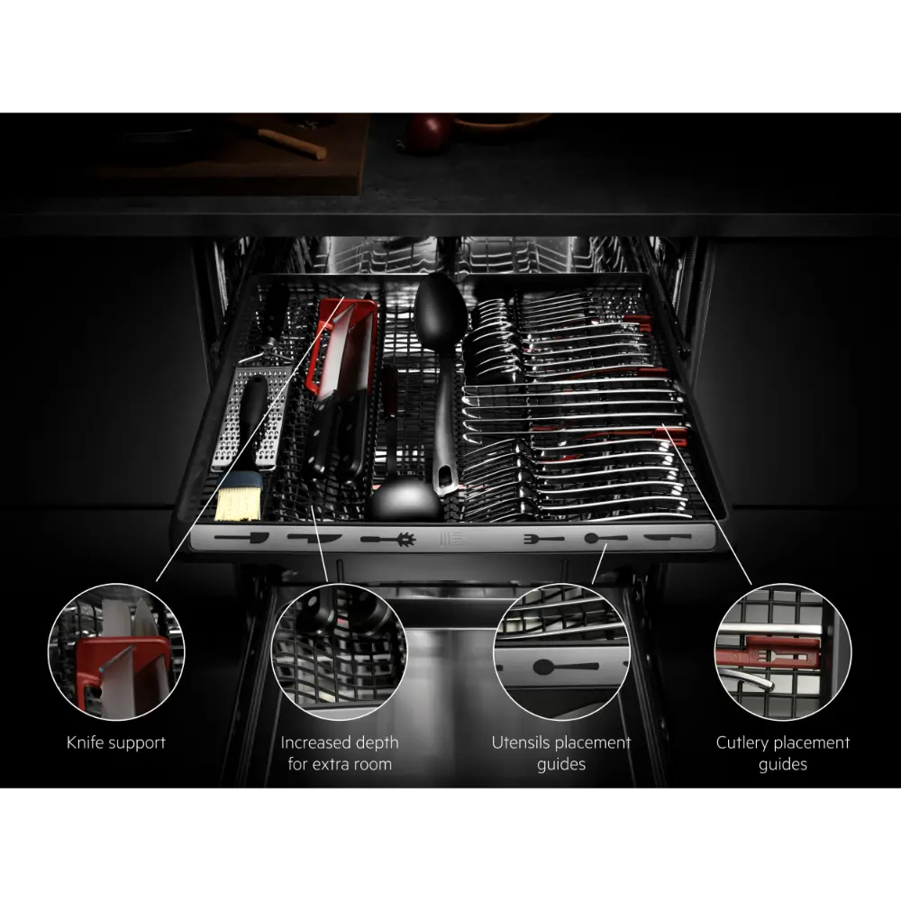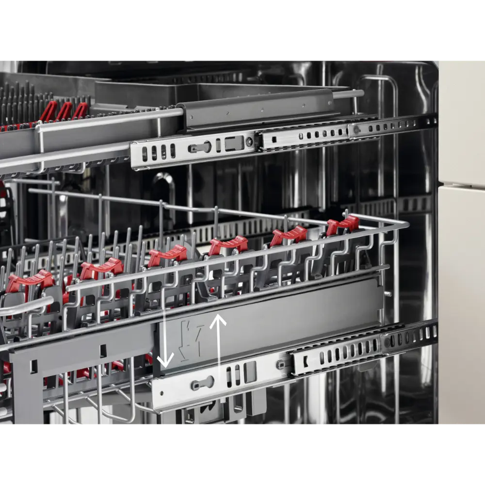 Opções cesto superior: 2 prateleiras rebatíveis, 2 prateleiras rebatíveis para copos, Suporte rebatível para chávenas