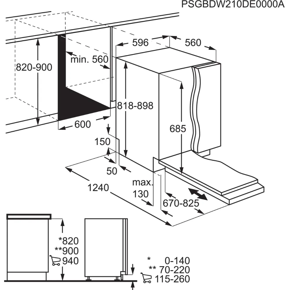 Máquina de Lavar Loiça AEG FSE7572AP – Encastre Total – 60cm – 14 Conjuntos – Classe B