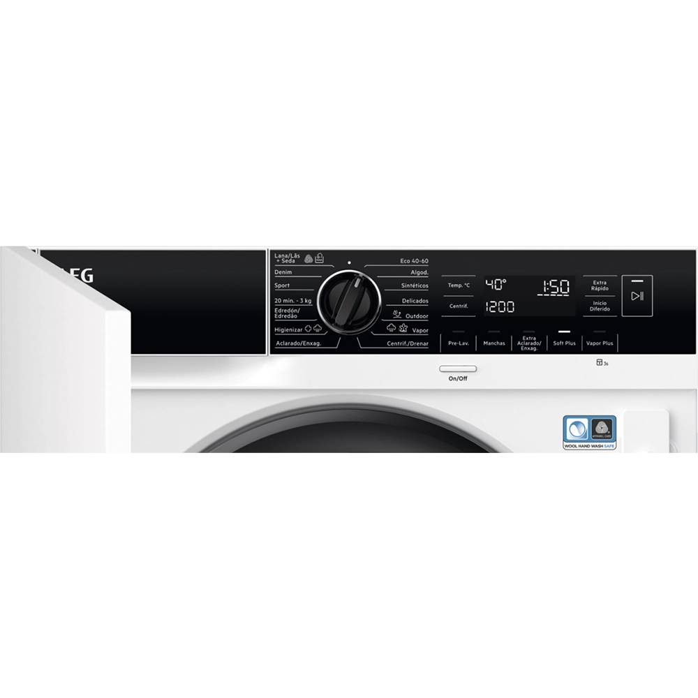 Programas de Lavagem (14): 20Min 3Kg, Algodões, Delicados, Gangas, Edredões, Eco 40-60, Hygiene, Desporto, Enxaguamento, Centrifugação / Drenagem, Desporto, Vapor, Sintéticos, Lã/Seda.