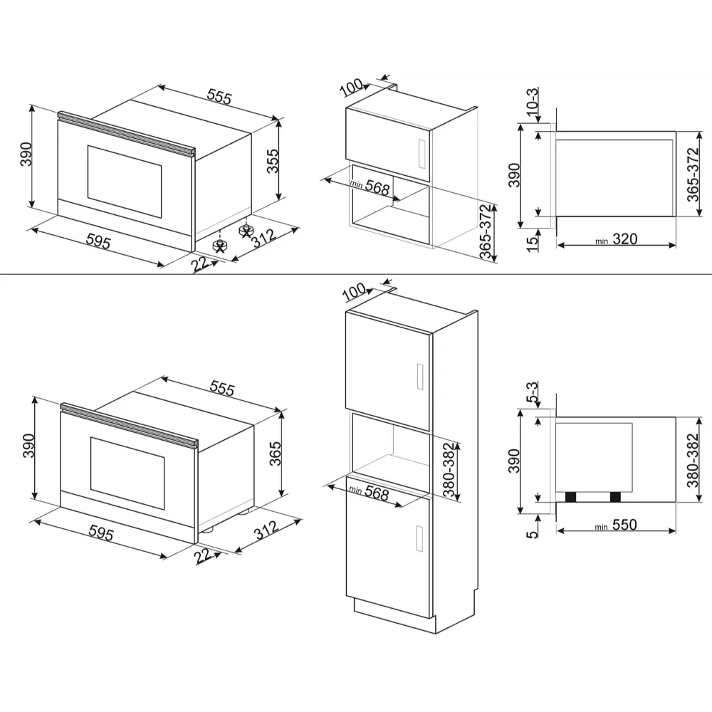 Dimensões (AxLxP): 390 x 595 x 334 mm (Profundidade com frente: 312 + 22 mm).