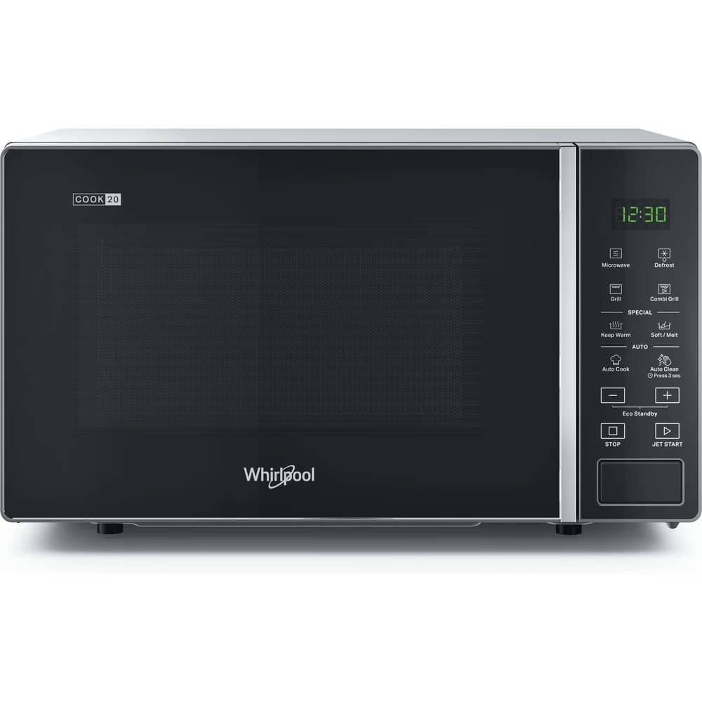 Micro-ondas eletrónico com grill, Capacidade: 20 litros, Acabamento em preto com corpo silver, Prato rotativo de 24,5 cm, Painel Touch, Potência máx. micro-ondas: 700 W, Potência máx. grill: 1000 W, Funções: JET START, MANTER QUENTE, LEVEDAR MASSA, DERRETER/AMOLECER, AUTO COOK (programas automáticos), AUTO CLEAN, 5 níveis de potência, Sinal sonoro de final de cozedura, Relógio digital, Sistema de segurança para crianças, Acessórios: Grelha Grill