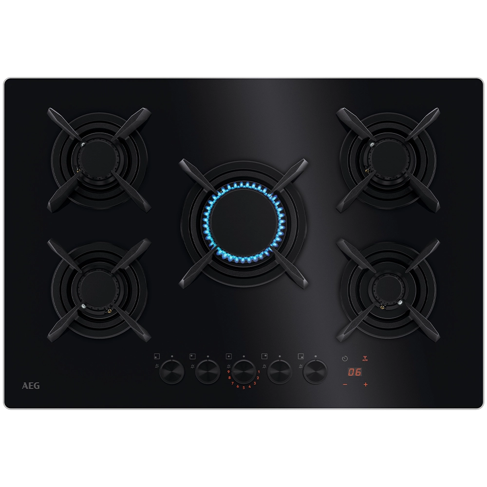 O preço original era: 313,00 €.296,00 €O preço atual é: 296,00 €.Placa Cristal Gás AEG HKB75453NB