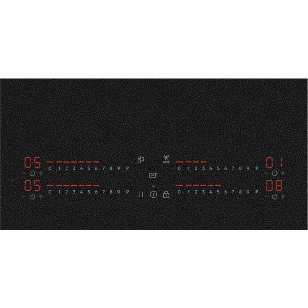 Funções: Indicador de calor residual em três passos, Alarme acústico, Função PowerBoost, Segurança de crianças, Temporizador Eco, Controlo flexível, Memória de nível de potência, Função Hob2Hood, Temporizadores individuais, Bloqueio de painel, Função ponte, Aviso por minutos, Função Pausa, Assistente de cozedura com controlo da ebulição, Desativar som.