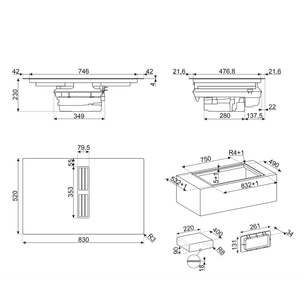 Placa de Indução com Exaustor Integrado Smeg – 83cm – Preto – HOBD482D2