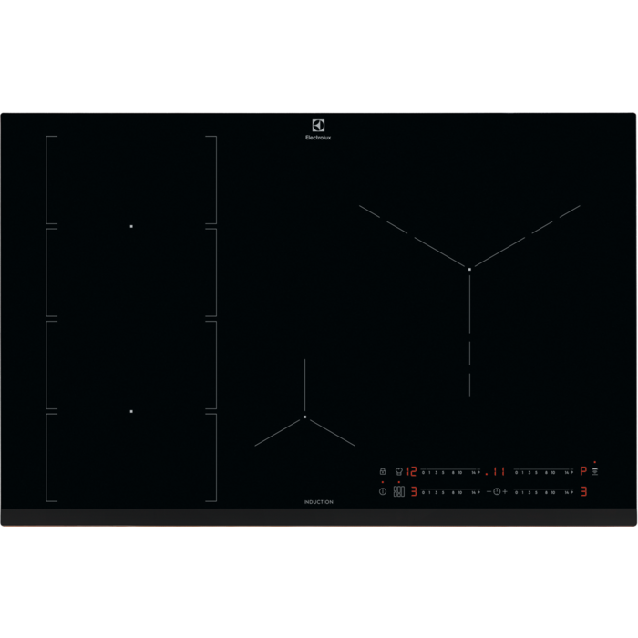 Controlo: Indicador de calor residual em três passos, Alarme acústico, Aquecimento automático, Função PowerBoost, Segurança de crianças, Temporizador, Temporizador Eco, Função FlexiBridge, Função Hob2Hood, Bloqueio de painel, Aviso por minutos, Função PowerSlide, Desativar som, Temporizador