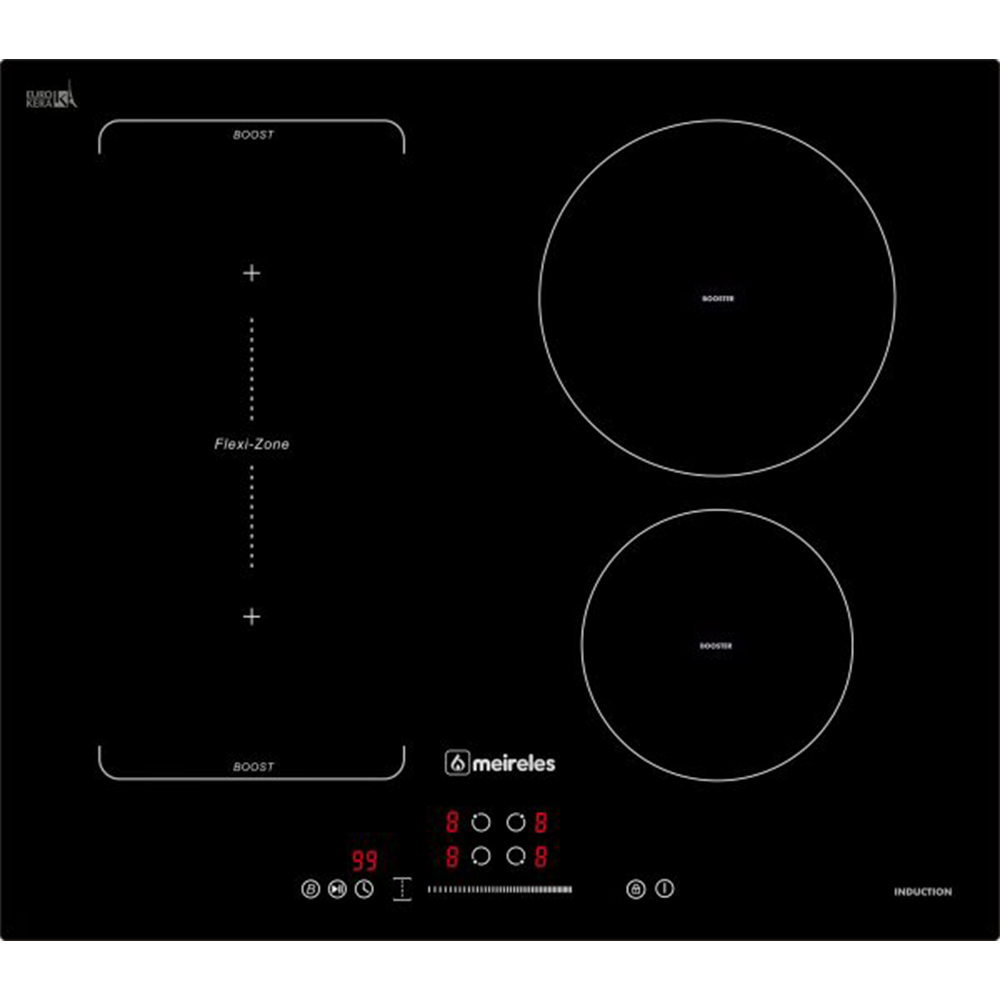 Placa vitrocerâmica de indução 60cm – Touch control – 4 zonas booster – 1 zona Flexível – Programador – Função Pause