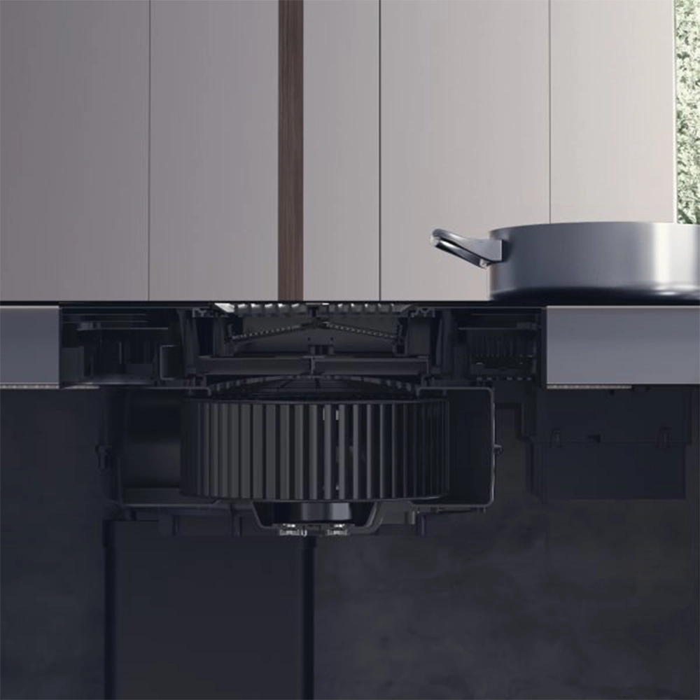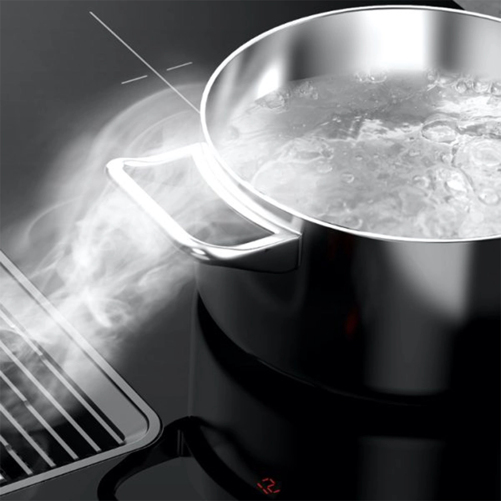 Placa vitrocerâmica de indução 83cm com exaustor integrado – Motor BLDC Inverter -Extracção 750 m3/h – Touch control slider – 2 zonas flexíveis – Programador – Plug & Play – Classe A++