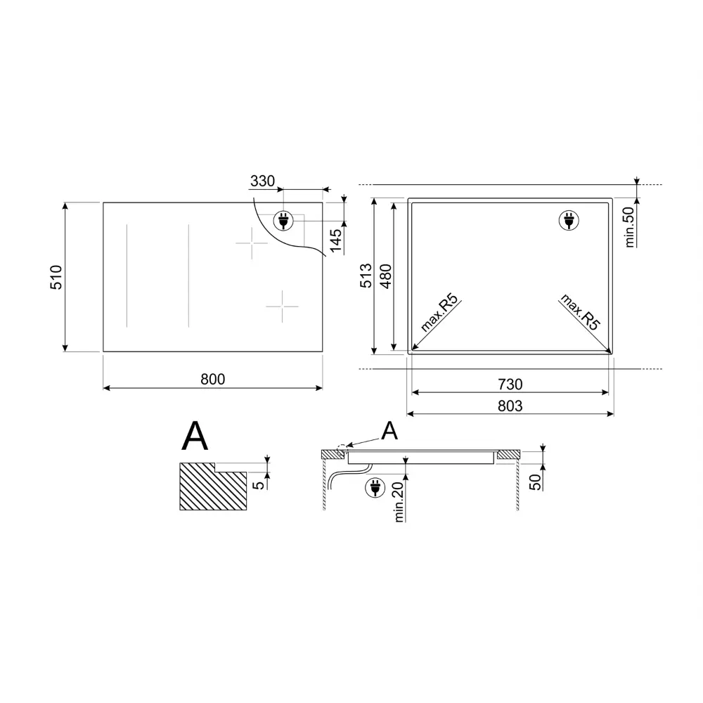 Placa de Indução Multizona Smeg Classica – 80cm – 4 Zonas – Preto Mate – SIM3844MB