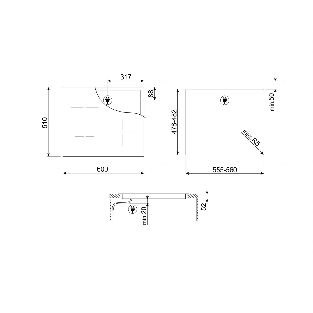 Placa de Indução Smeg – 60cm – 4 Zonas – Preto – SI2641D