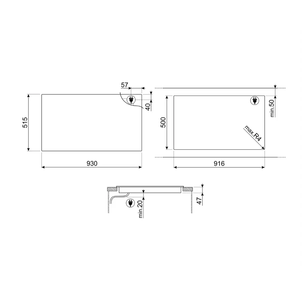 Corte na pedra: 500-916 mm.