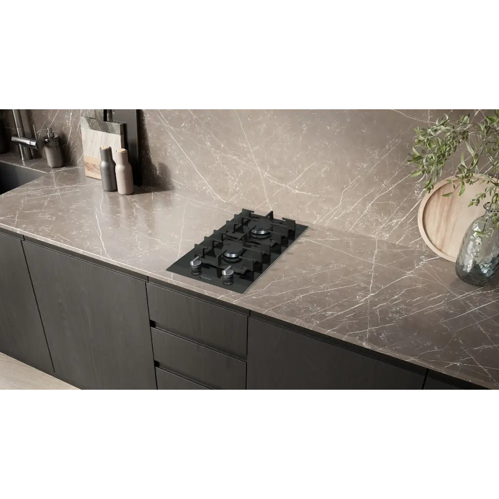 Compatibilidade: Gás natural (L/LL G25/20mbar, H/E 20mbar, E+ 20/25mbar, H 25mbar, L 25mbar) e gás butano/propano (G30, 31 28-30/37mbar, G30 37mbar, 50 mbar).
