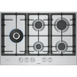 Grelhas: **Grelhas de suporte de panelas em ferro fundido** com apoios em borracha (contínua para elevada firmeza e estabilidade, **laváveis na máquina de lavar loiça**).