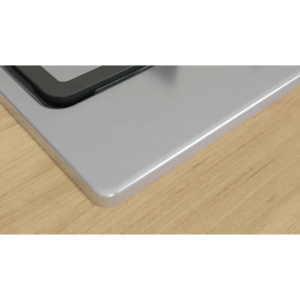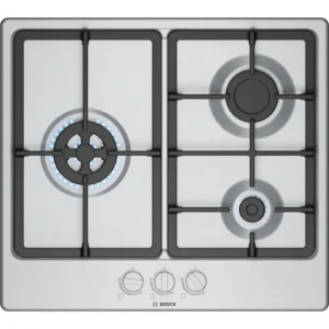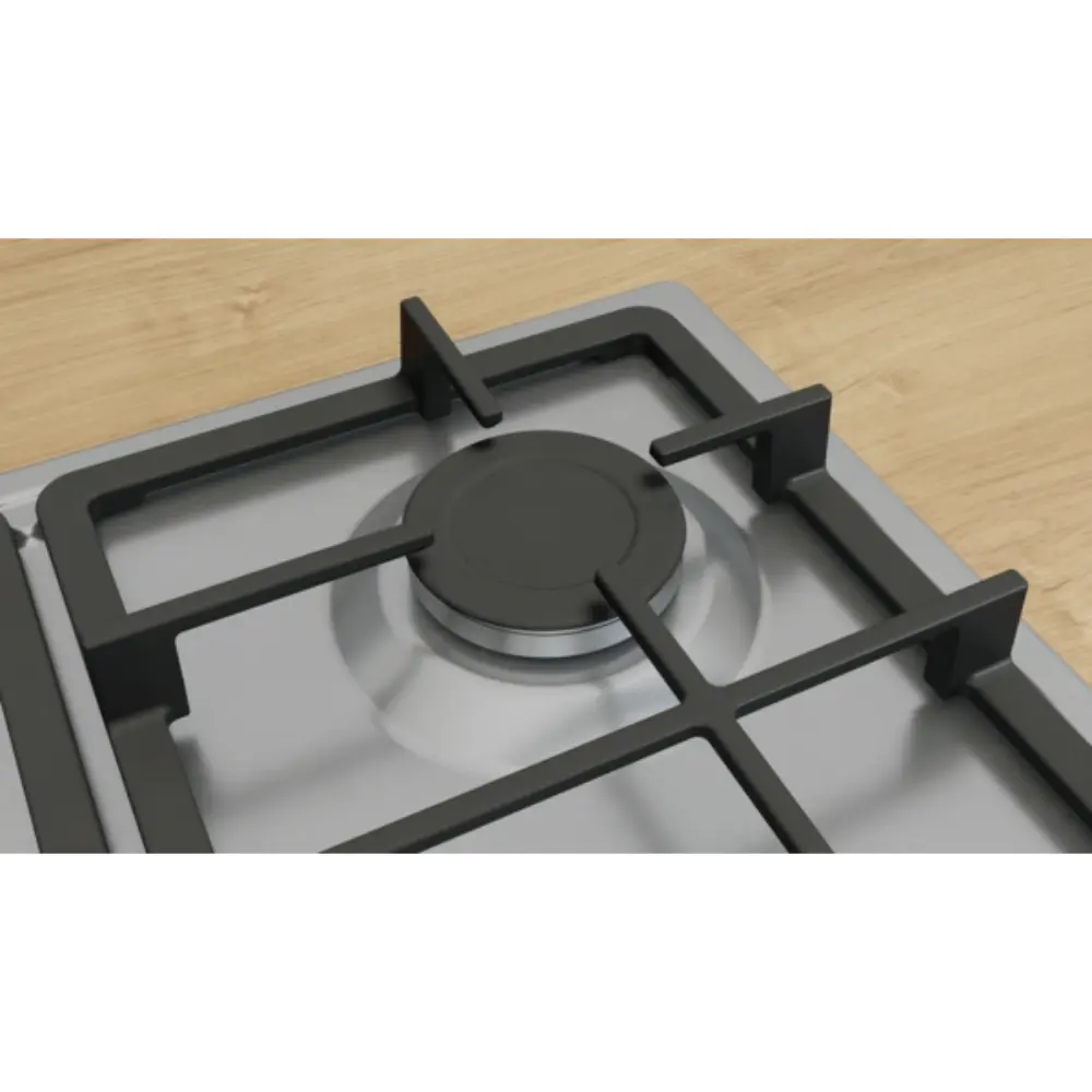 Grelhas: **Grelhas de suporte de panelas em ferro fundido** com apoios em borracha (contínua para elevada firmeza e estabilidade, **laváveis na máquina de lavar loiça**).