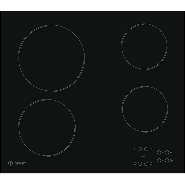 O preço original era: 438,00 €.400,00 €O preço atual é: 400,00 €.Placa Vitrocerâmica Indesit RI 161 C (ES) – 58 cm, Elétrica, Vidro Preto
